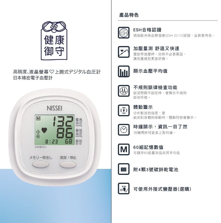 關鍵字搜尋: 血壓計 電子血壓計 手臂型血壓計 心律不整偵測