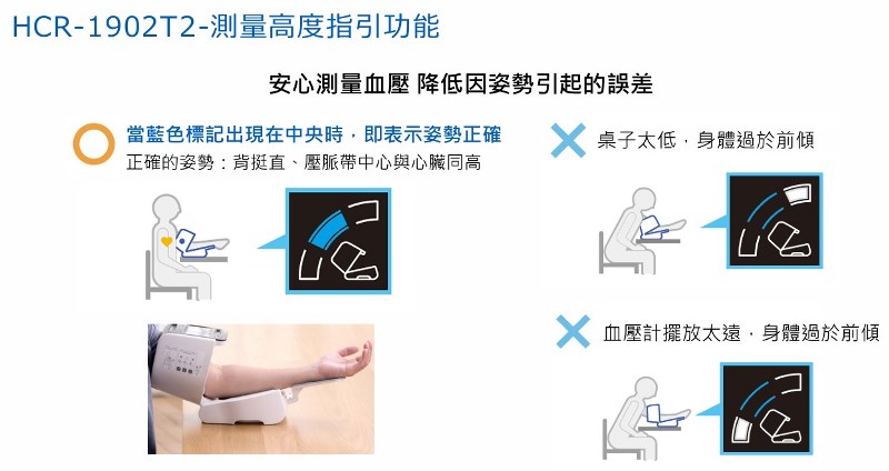 圖測量高度指引功能,確保正確量測姿勢