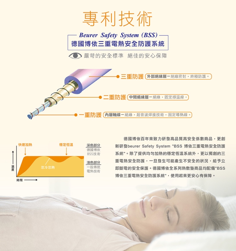 - 安全性:德國博依三重電熱安全防護系統 (BSS),防止過熱保護設計