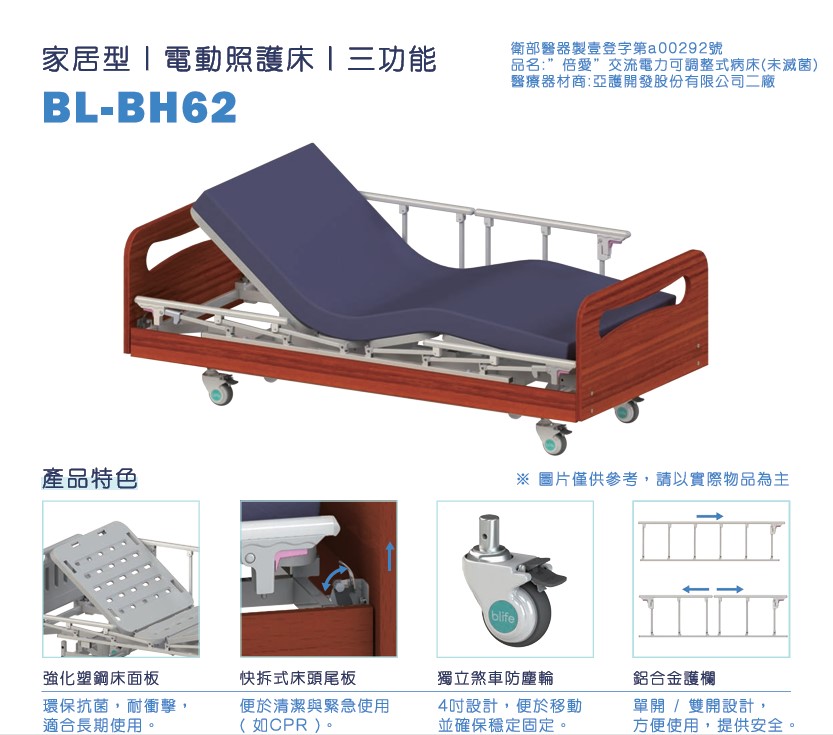 醫療器材許可證所載品名: 倍愛電動護理床