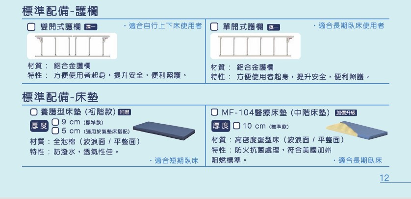 * 標準配件:搭配養護型床墊