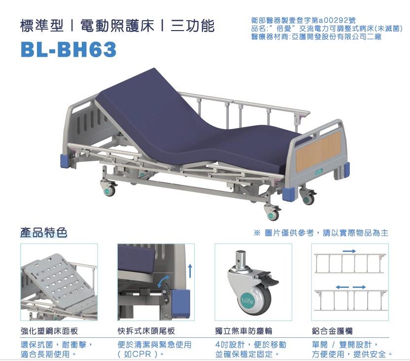 醫療器材許可證所載品名: 倍愛電動護理床