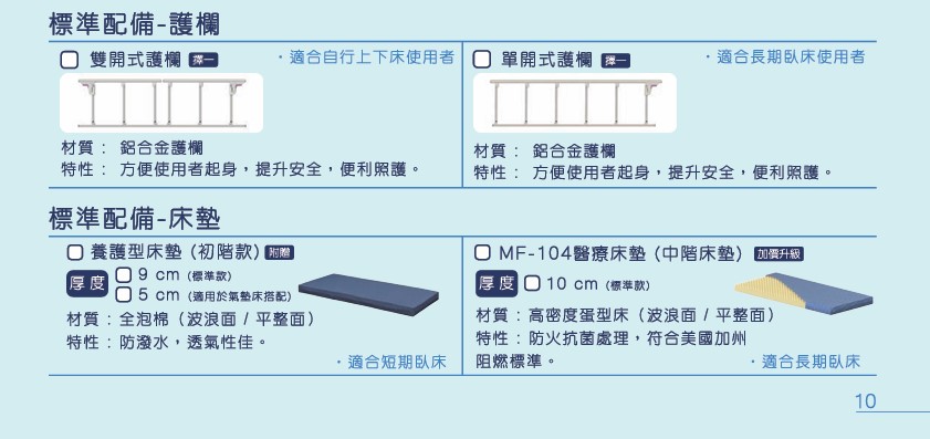 * 標準配件:搭配養護型床墊