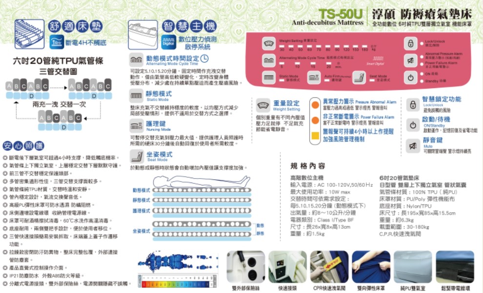 醫療器材許可證所載品名:“淳碩”交替式壓力氣墊床(未滅菌)