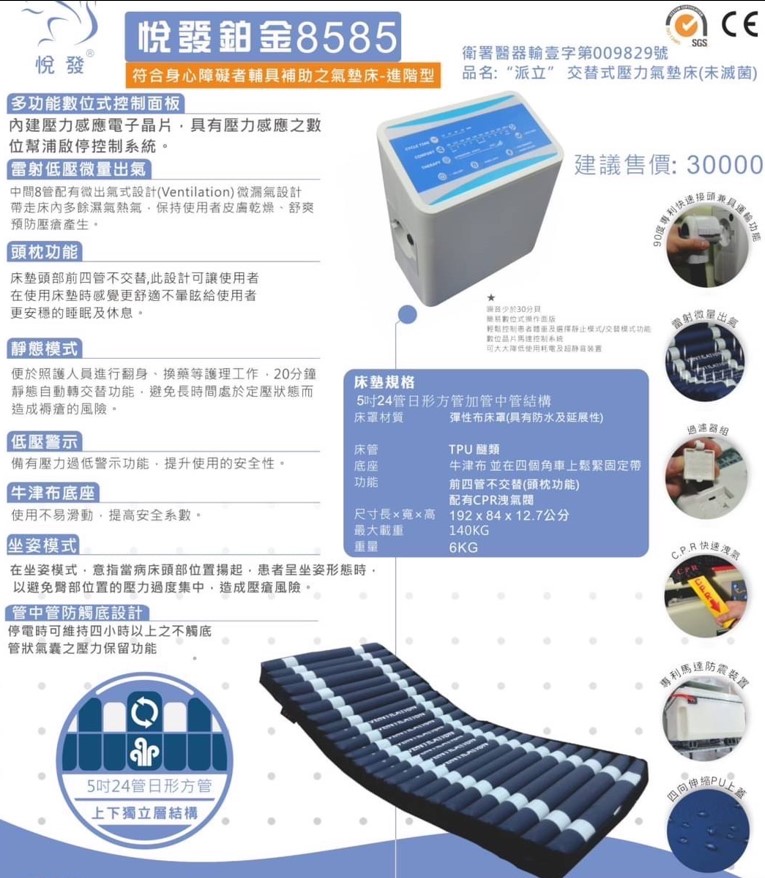 醫療器材許可證所載品名:“派立” 交替式壓力氣墊床(未滅菌)