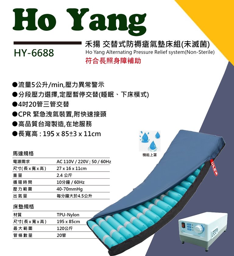 醫療器材許可證所載品名"禾揚" 交替式壓力氣墊床 (未滅菌)