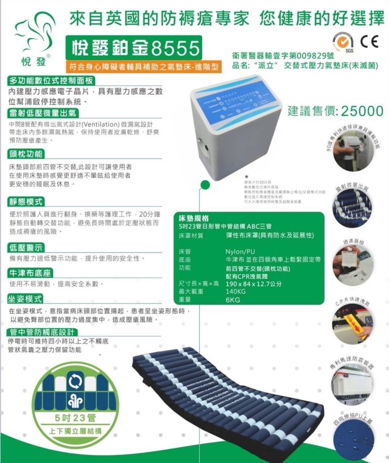 醫療器材許可證所載品名:“派立” 交替式壓力氣墊床(未滅菌)