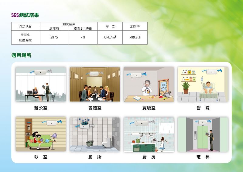 * 適用:辦公室、會議室、實驗室、醫院、臥室、廁所、廚房、電梯..等等