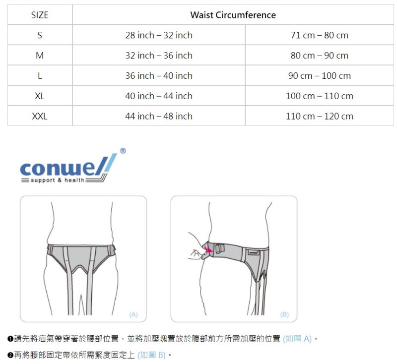 醫療器材許可證所載品名:"康威利" 疝脫支撐器 (未滅菌)