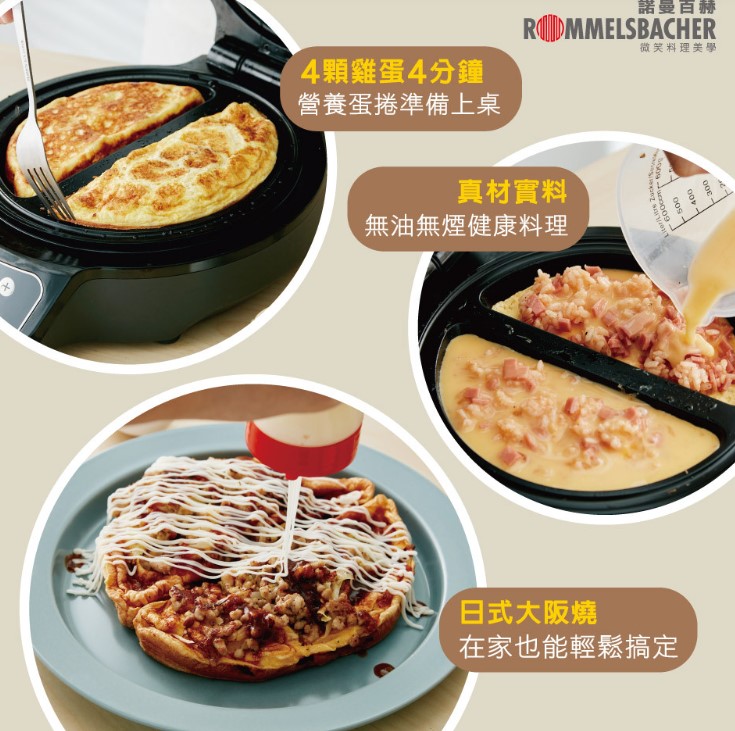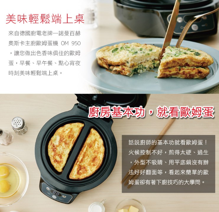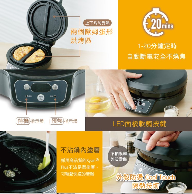 ■ 讓您做出色香味俱佳的歐姆蛋,早餐、早午餐、點心宵夜時刻美味輕鬆端上桌。有厚度的烘烤區域,更能升級成料多味美的西式烘蛋,也能用來製作麵團類點心,像是布朗尼蛋糕或者簡單速成的酥皮布丁派。展現不一樣的手藝,靠奧斯卡主廚的幫忙,輕鬆就能搞定!