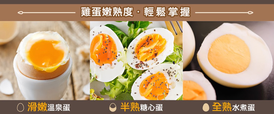 ■ 可做溫泉蛋、半熟糖心蛋、全熟水煮蛋、荷包蛋